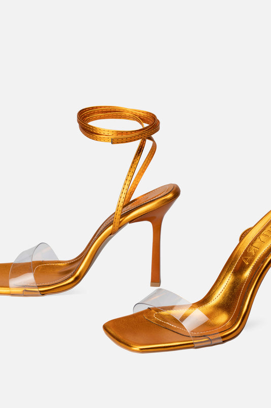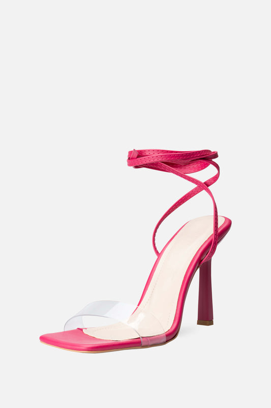 Şeffaf Bantlı Bağcıklı İnce Yüksek Topuklu Ayakkabı