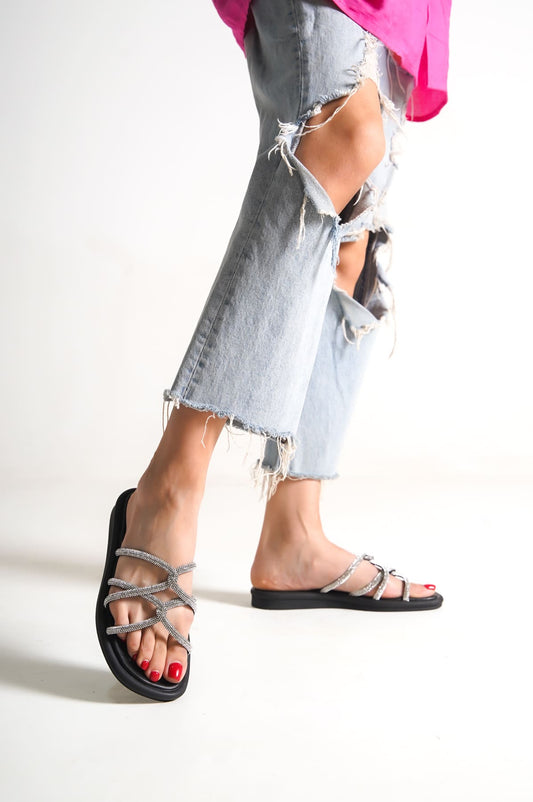 Mat Saten Taşlı İnce Yüksek Topuklu Terlik