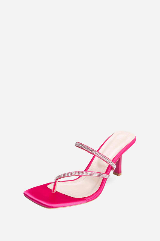 Saten Taşlı İnce Yüksek Topuklu Terlik